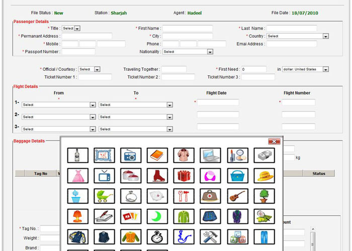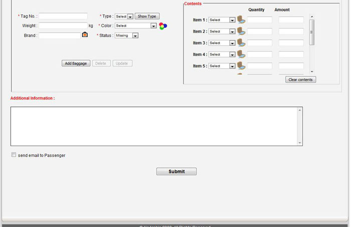 Contents of the baggage can be specified using list box or the showing window .It also follows the SITA standard for baggage contents that can be settled