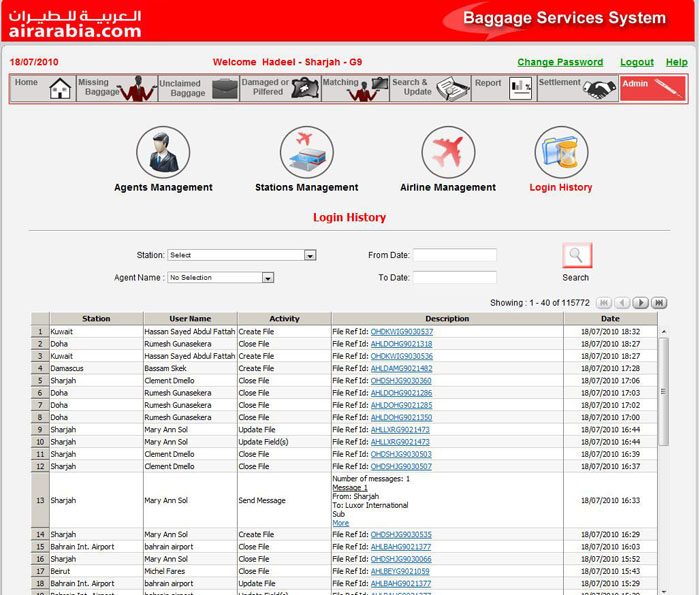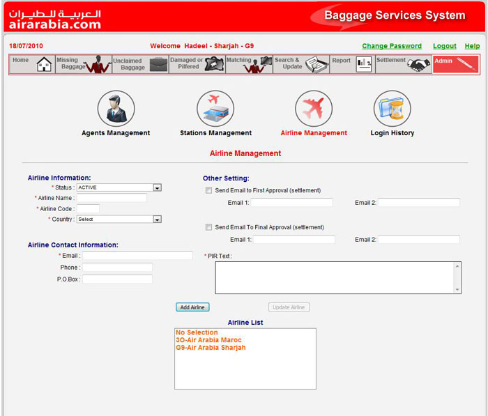 In this page a new airline can be added so the reference number of all the files will contains the airline code for example G9 for Air Arabia Sharjah and 3O for Air Arabia Morocco